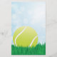 Illustration des Tennisballs auf Gras mit Sonnenschein und des Aufflackerns auf Hintergrund.