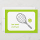 Tennisschläger und Balleinladung mit einem grauen Schläger, einem grünen Tennisball und dem Text auf weißem Hintergrund mit grüner Grenze. Personalisieren Sie es und fügen Sie den Text "Bester Tennisspieler" oder Monogramm, Name oder Ihre Nachricht. Das perfekte Geschenk für den Tennisspieler oder Tennisliebhaber in Ihrem Leben. Einige Elemente mit freundlicher Genehmigung von vectorportal.com.