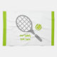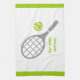 Tennisschläger und Küchenhandtuch mit grauem Schläger, grünem Tennisball und weißem Hintergrund mit grüner Grenze. Personalisieren Sie es und fügen Sie den Text "Bester Tennisspieler" oder Monogramm, Name oder Ihre Nachricht. Das perfekte Geschenk für den Tennisspieler oder Tennisliebhaber in Ihrem Leben. Einige Elemente mit freundlicher Genehmigung von vectorportal.com.