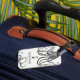 Ein einzigartiges schwarz-weißes, auf den Strand Liebe Gepäckstück zum Thema Oktopus. Es zeigt Ihren Namen in der Mitte mit einem Vintagen Stilanker darunter. Um das herum befinden sich Kraken-Tentakel, die das Meer tief darstellen.