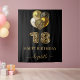 Une tapisserie pour une fête de 18 ans girly et glamour. Un fond noir, décoré de ballons. Avec le texte : Joyeux Anniversaire. Personnalisez et ajoutez un nom. Le nom est écrit en rose or foncé avec un style de lettrage à la main moderne avec des fioritures. Le numéro 18 est écrit avec une police de style ballon tendance, imprimé léopard. Pour garder les fioritures, supprimez simplement le nom de l'exemple, laissez les espaces ou les émojis devant et après le nom. Peut être utilisé comme bannière de bienvenue, décoration murale pour la fête ou comme toile de fond pour un photomaton.