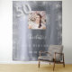 Une tapisserie de bienvenue pour une soirée glamour de 50ème anniversaire. Un arrière - plan métallique à l'aspect faux argenté décoré de poussière de parties scintillant. Personnalisez et ajoutez une photo de haute qualité, nom et date. Le numéro 50 est écrit avec une police de style ballon. Peut aussi être utilisé comme fond de cabine photo et décoration murale de fête, décoration.