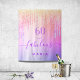 Une tapisserie d'anniversaire 60 ans tendance et glamour. Un fond coloré arc-en-ciel en violet, lilas, rose et or décoré de gouttes de fausse brillance, aspect peinture qui coule. Avec le texte : 60 et fabuleux. Personnalisez et ajoutez un nom. Texte de couleur violette. Le mot Fabuleux est écrit avec une police manuscrite moderne avec fioritures.