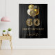 Une tapisserie pour une fête d'anniversaire glamour de 60 ans. Un fond noir, décoré de ballons. Avec le texte : Joyeux Anniversaire. Personnalisez et ajoutez un nom. Le nom est écrit en or rose foncé avec un style de lettrage manuscrit moderne avec des fioritures. Le numéro 60 est écrit avec une police de style ballon tendance, motif léopard. Pour garder les fioritures, supprimez uniquement le nom de l'exemple, laissez les espaces ou les émojis devant et après le nom. Peut être utilisé comme bannière de bienvenue, décoration murale pour la fête ou comme toile de fond pour un photomaton.