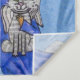 Cette tapisserie murale a un ange avec les cheveux noirs dans une robe bleue avec des étoiles blanches tenant un chat ange blanc assis sur un nuage blanc, tous deux ont des halos argent sur un arrière - plan bleu clair.
