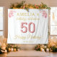 Aquarelle d'orchidée rose 50e anniversaire fond. Tapisserie de 50ème anniversaire pour elle avec fleurs d'orchidées d'aquarelle rose. Utilisez les tapisseries comme toile de fond ou bannière pour la fête du 50e anniversaire. Personnalisez-le avec votre texte.