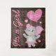 Tapisserie de baby shower de fille chic campagnard avec un arrière - plan en bois rustique, un mignon petit éléphant portant un ballon rose, entouré d'un joli coeur, et un élégant modèle de baby shower facile à personnaliser.