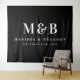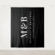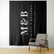 Une bannière moderne de tapisserie noire qui peut personnaliser à vos noms initiales et date mariage. Un design de script simple mais moderne qui peut être utilisé comme bannières mariages, bannières de fiançailles, décoration mariage, etc. Un design minimaliste de verre à boire, parfait pour toutes les occasions.