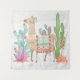 Un doux, aquarelle avec un lama se tenant parmi des cactus. Artiste : Mary urbaine