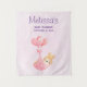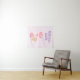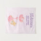 Tapisserie de baby shower avec une adorable illustration. Un petit lapin portant une petite couronne dorée. Porté par des ballons dans une couverture de coeur rose.