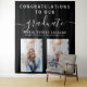 Célébrez la réussite de votre diplômé et organisez une fête simple avec ce fond de scène minimaliste en tapisserie de calligraphie de script à deux photos sur fond noir que vous pouvez accrocher ou attacher à votre mur.