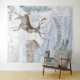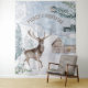 Cerf de Noël en bois enneigé, avec un cabine en bois et des arbres enneigés.Illustration à la main d'aquarelles modernes. Joyeux texte de Noël est personnalisable et optionnel.