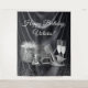 Fête d'anniversaire en noir et argent avec en arrière-plan de belles chaussures haute talon argent vignette sur un arrière - plan satin noir. Cette belle banderole de fond en talon noir et argent est facilement customisée avec le texte de votre choix.