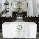 Un beau signe de chemin de table de fête sur le thème du baptême avec une couronne de feuilles d'olive, idéal pour votre baptême. Personnalisez ce signe de tapisserie de baptême unique et créez une belle décoration de table pour votre fête de baptême ou célébration d'événement religieux. Cette tapisserie de buffet de baptême familial ou de table de cadeaux est polyvalente car elle peut être utilisée sur votre table à manger, bannière suspendue, sur table de snack ou de boissons, etc.