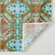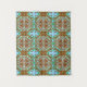 Oeuvre artisanale Mandala de hibou dessinée à la main en tapisserie orange, marron, bleue et verte.