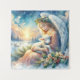 This enchanting scene captures a tender Christmas angel cradling a peaceful lamb against a glowing winter sunrise. Surrounded by a snowy forest, evergreen branches, and delicate holly adorned with berries and poinsettias, the image evokes a deep sense of serenity and spiritual warmth. Soft pastel tones blend with radiant light and starry skies, highlighting the angel's flowing gown, feathered wings, and gentle expression. White doves soar overhead while distant lambs graze across a frost-kissed field, enriching the overall sense of calm and holiday reverence. Ideal for evoking feelings of divine comfort and the quiet magic of a spiritual Christmas, this ethereal winter scene blends elements of peaceful nativity and holiday tranquility. Designed to inspire and uplift, this composition brings a timeless message of peace, innocence, and grace. AI generated artwork.