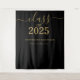 Cette tapisserie minimaliste et moderne de graduation, cabine photo/accessoires, présente un arrière - plan noir classique avec les mots "classe de 2025" dans l'élégante police de caractères or stylisée. Nom de la Personnaliser et nom de l'école de votre diplômé. Facile à customiser.