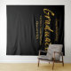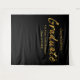 Félicitations élégantes et classiques pour bannière de bienvenue de diplômé, arrière-plan de mur de photo. Conçu avec une typographie de pinceau manuscrit doré tendance sur fond noir élégant et classe. Personnalisez les détails de l'école ou de l'université et l'année de la promotion.