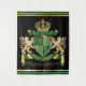 Créez votre propre blason aristocratique, emblème, insigne ou armoiries familiales avec ce magnifique dessin classique d'écusson ou de bouclier. Des motifs vert foncé ornent un bouclier surmonté d'une couronne dorée et flanqué d'un lion ou d'un griffon héraldique médiéval. Une bannière supérieure assortie contient votre date de mariage personnalisée / date de naissance / devise ou cri de guerre. Le bouclier comporte un espace pour vos initiales de monogramme. La bannière inférieure porte le nom de votre famille. Il y a également de la place ci-dessous pour votre citation, devise ou message préféré. Remplacez le texte d'exemple par le vôtre pour un cadeau personnalisé. Un design neutre en termes de genre qui convient aux familles, groupes, couples ou individus. Fait un merveilleux cadeau pour mariage, anniversaire, anniversaire, retraite, promotion, fête des