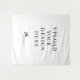 Cette tapisserie imprimée est l'ajout parfait à votre événement spécial. Elle est disponible en cinq tailles : du petit au très grand format et est fabriquée à partir de polyester léger avec des bords coutus main. Parfaite pour servir de toile de fond ou pour une cabine photo lors d'un mariage, d'une fête de fiançailles, d'une baby shower, d'un anniversaire, d'une remise de diplôme ou de presque toutes les occasions spéciales.