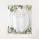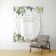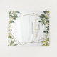 Tapisserie florale de mariage unique dorée et verte avec des feuilles tropicales vertes et dorées brillantes, un cadre géométrique et des éclaboussures d'or pour un look unique qui convient à tous les thèmes de mariage ou pour s'adapter à toutes les saisons de mariage.