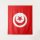 Drapeau de la Tunisie: Majoritairement rouge, il comporte en son milieu un disque blanc où figure un croissant rouge qui entoure une étoile à cinq branches.