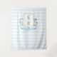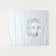 Dessin de tissu à utiliser comme signe d'accueil de fête et/ou fond photo. Le design se compose d'une crête monographique couleur bleu clair et blanc intemporelle d'inspiration côtière contre un imprimé à rayures bleues et blanches. J'ai des invitations et d'autres articles de papeterie dans le même design (voir collection). Montré ici pour un Mariage / Fête des mariées mais tout le texte peut être customisé à vos besoins. Vous pouvez également ajouter ou supprimer des champs de texte à l'intérieur de l'outil de conception.