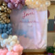 Des nuages roses et bleus créent une atmosphère éthérée sur cette tapisserie de fond pour une fête de mariage "Elle a trouvé son amant". Des papillons voltigent le long des bords de l'œuvre d'art. Modifiable pour toute célébration, y compris une fête de couple, une fête de mariage, une soirée d'enterrement de vie de jeune fille, une nuit de poule, une fête prénatale ou une fête d'anniversaire. Disponible avec des produits assortis.