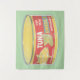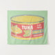 Un style publicitaire rétro illustrant une boîte de thon. Cette boîte de poisson a un étiquette qui dit que le thon est élevé dans Oméga 3 et pêché de manière durable. Attention à tous ceux qui aiment la nourriture en conserve / en conserve