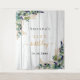 Pour une fête d'anniversaire de 21 ans (ou tout âge). Bois blanc rustique comme arrière-plan. Décoré de feuilles d'eucalyptus aquarelles vertes, brindilles, feuillage et feuilles dorées fausses. Personnalisez et ajoutez un nom, 21 ans et une date. Lettres noires et dorées. Peut être utilisé comme bannière de bienvenue, comme décoration murale de fête ou comme arrière-plan de photomaton.