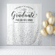 Élégant fond de fête de remise de diplômes pour photos présente une casquette de diplômé de couleur argentée, "Diplômé" en écriture cursive, et un texte personnalisé moderne qui peut être personnalisé avec le nom et l'école du diplômé. Un motif de confettis argentés qui tombent habille le fond - accessoire de fête parfait pour que les invités se tiennent devant pour des photos avec le diplômé ! Plusieurs tailles sont disponibles.