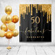 Un tapis de sol tendance et glamour pour les 50 ans (ou tout âge). Un fond noir classique orné de gouttes de paillettes dorées fausses, aspect peinture qui coule. Avec le texte : 50 et fabuleux. Personnalisez et ajoutez un nom. Texte de couleur dorée. Le mot Fabuleux est écrit avec un style d'écriture manuscrite moderne avec des fioritures. Peut être utilisé comme bannière de bienvenue, décoration murale de fête ou comme arrière-plan pour photobooth.