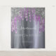 Une tapisserie pour une fête d'anniversaire 21 ans (ou tout âge) girly et glamour. Un fond aspect argenté avec des gouttes élégantes violettes et pailletées aspect argenté, effet de peinture qui goutte. Le texte : le nom est écrit en blanc avec un style de lettrage manuscrit moderne avec des fioritures. Pour garder les fioritures, supprimez simplement le nom exemple, laissez les espaces ou émojis devant et après le nom. Personnalisez et ajoutez un nom, âge 21 et une date. Peut être utilisé comme décoration murale pour la fête ou comme toile de fond pour un photomaton.