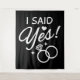 Texte ludique et mignon "J'ai dit oui !" avec un graphique de doubles anneaux. Utilisez tel quel ou ajoutez votre texte. Idéal pour les douches de mariée, les fêtes de fiançailles ou les séances photo de mariage.