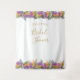 Tapisserie de douche nuptiale d'automne avec une typographie dorée élégante et feuilles d'automne. Le design présente des bordures de feuillage botanique dans les couleurs automnales vert, orange, or et violet. Il est lettrage avec "douche nuptiale de [nom]" et prêt à être personnalisé. Veuillez parcourir ma boutique dans la collection October Leaves, pour des articles assortis.