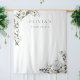 Tombez amoureux de ce design botanique éthérée pour les douches nuptiales d'automne, les dîners de répétition, les mariages ou les fêtes de fiançailles. L'élégant design comprend un citrouille d'aquarelle blanche inscrit avec les initiales du couple et flanqué de fleurs blanches, de feuillage vert et de feuilles d'eucalyptus. Personnalisez cette toile de fond photo avec deux lignes de texte personnalisé.