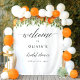 Créez un moment d'image parfait avec notre fond de Fête des mariées Welcome Oranges, avec une calligraphie élégante et des accents d'agrumes orange, vert et bleu vibrants. Idéal pour une douche nuptiale de printemps ou d'été, ce décor époustouflant ouvre la scène pour un stand photo amusant et ajoute une touche rafraîchissante à votre décor de douche nuptiale !