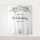 Élégant, classique, style floral moderne 50 ans (ou tout âge) bannière de fête d'anniversaire, tapisserie. Décoré de pivoines aquarelles blanches, fleurs et verdure d'eucalyptus. Avec le texte : 50e anniversaire écrit avec un style d'écriture manuscrite noir moderne et grand. Personnalisez et ajoutez un nom et une date. Peut être utilisé comme bannière de bienvenue, décoration murale pour la fête ou comme arrière-plan photo.