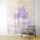 Dragon pastel violet et rose bébé dormant paisiblement entouré de confettis dorés sur cette tapisserie de fond de cabine de douche bébé personnalisable. Idéal pour une baby shower sur le thème des dragons ou une baby shower sur le thème fantasy pour une petite fille. Utilisez cette tapisserie de dragon comme un superbe fond pour prendre des photos lors de votre fête sur le thème des dragons ! Accessoire photo de dragon féminin mignon.
