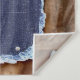 Un décor de fête d'anniversaire rustique, moderne, élégant et chic avec un thème denim et diamants. Il comporte un fond de patch en denim sur un panneau de bois en détresse, une paire de bottes de cowgirl avec un détail de rose recouvert de strass (c'est un effet numérique), un chapeau de cowgirl avec un détail de strass (également un effet numérique) et une typographie en blanc, ainsi que des guirlandes lumineuses. Un design chic "denim et diamants" pour une femme pour son anniversaire !