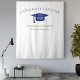 Fond de dos pour célébration de remise des diplômes moderne pour occasions photo ! Paillettes en haut et en bas, chapeau de remise des diplômes et lettrage en bleu, modèle de nom en or. Promotion en lettrage de script à paillettes or avec modèle d'année en blanc. Ajoutez l'année, le nom et le nom de l'école.