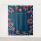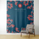 Fleurs de pêcher orientales / fleurs de prunier, fleurs printanières rouges, rose clair et bleu marine foncé avec un symbole de double bonheur rond simple pour fond de photo de mariage / photomaton / tapisserie accessoire photo. Un design de mariage élégant et romantique sur le thème floral chinois, à la fois fantaisiste, moderne et chic.