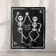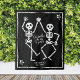 Fond de mariage de squelette dansant avec la citation "Jusqu'à ce que la mort nous fasse la fête", un couple, leurs noms et une date établie. Décoration de cérémonie, de réception ou de mariage en noir et blanc. Idéal pour un événement gothique, Halloween, effrayant ou à thème sombre.