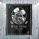Fond de mariage ou de réception de mariage jusqu'à ce que la mort nous sépare avec un couple de squelettes, noms personnalisés et date établie. Conception en noir et blanc avec un style gothique.