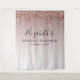 Tapisserie chic personnalisée pour photobooth pour votre EVJF avec des strass or rose qui gouttent sur un fond dégradé or rose et votre prénom dans un script élégant. Vous pouvez personnaliser davantage avec la date.