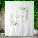 Avec des feuilles de verdure délicates peintes à l'aquarelle, ce fond de photomaton botanique chic peut être personnalisé avec vos initiales de monogramme en typographie dorée chic. Conçu par Thisisnotme©