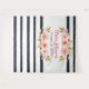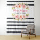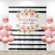 Fond de scène pour la fête de remise des diplômes pour elle avec un texte doux noir et rose vif qui peut être personnalisé avec le nom et l'année de promotion de votre diplômé, encadré par un arrangement floral aquarelle joli avec du feuillage vert et des fleurs pastel rose, blush, et pêche de printemps dahlia et rose. Un motif de rayures douces de style tableau noir accentue l'arrière-plan. Un beau fond pour les photos de fête de remise des diplômes !