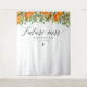 Créez un moment idéal avec notre fond de Fête des mariées Future Mme Oranges, avec d'élégantes calligraphies et des accents d'agrumes orange, vert et bleu. Idéal pour une douche nuptiale de printemps ou d'été, ce décor époustouflant ouvre la scène pour un stand photo amusant et ajoute une touche rafraîchissante à votre décor de douche nuptiale !