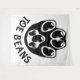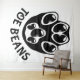 Une patte noire avec des haricots noirs comme orteils, avec le texte "Fèves d'orteil", sous la patte.