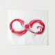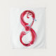Infinity symbole of continuous stream of red pouring into glass glass glass on white background.